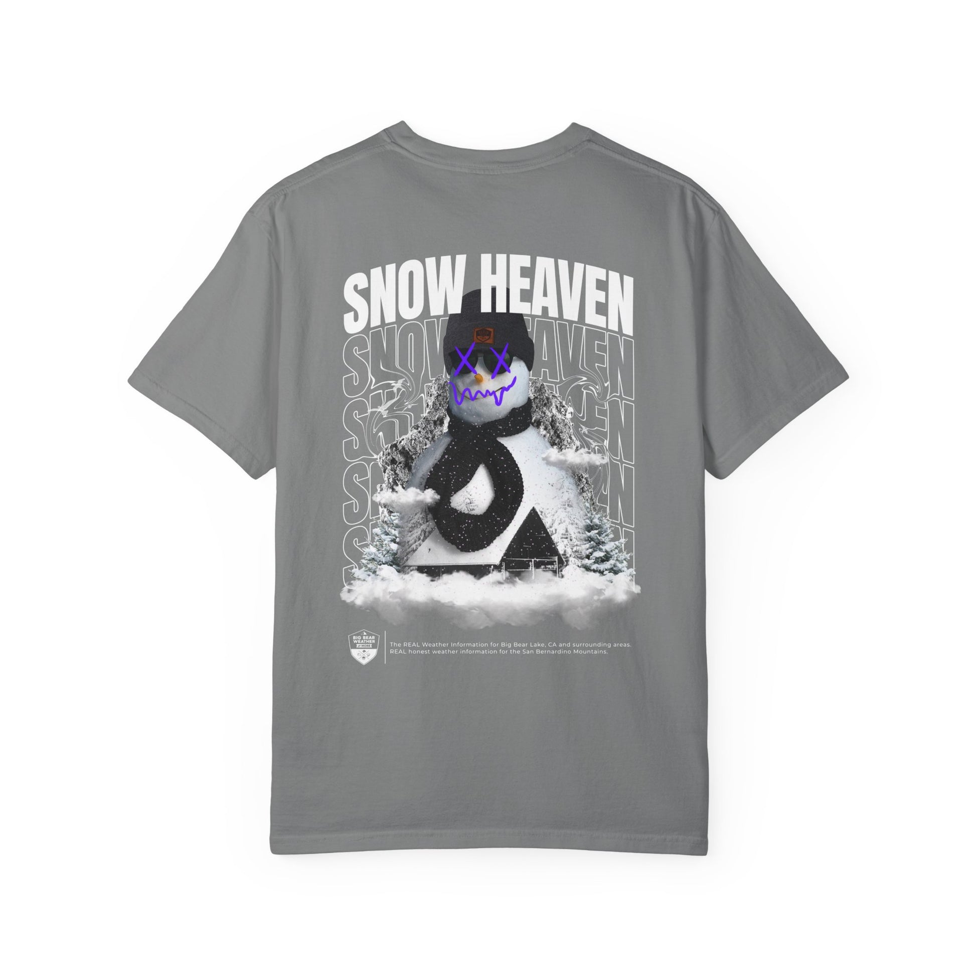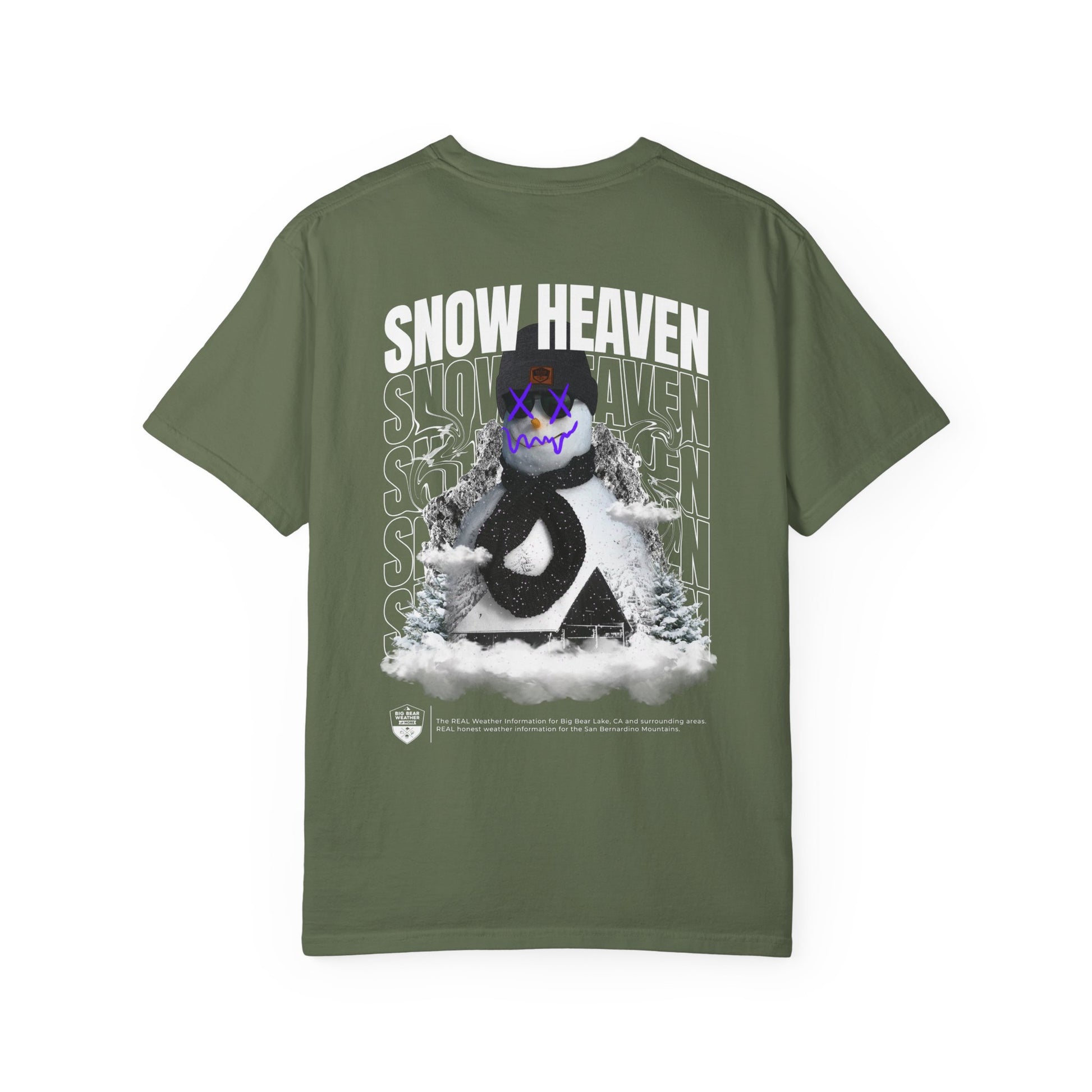 Soft, slightly oversized tee with a quiet front script and a bold back illustration — this shirt feels like a private mood. The front reads “I’M IN HEAVEN” in a simple, hand-drawn type that sits low on the chest, while the back unfolds a badass snowman, rocking our classic beanie.